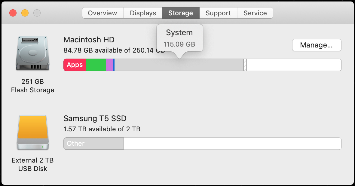While testing out various external storage drives on my MacBook Pro 2014, I noticed that my system says Mojave is taking up 115GB of my 256GB internal SSD. That seems way too high. I looked up Big Sur and Apple states, “If upgrading from macOS Sierra or later, macOS Big Sur requires 35.5GB of available storage to upgrade.” But I’m not sure how much it actually take up after installation.