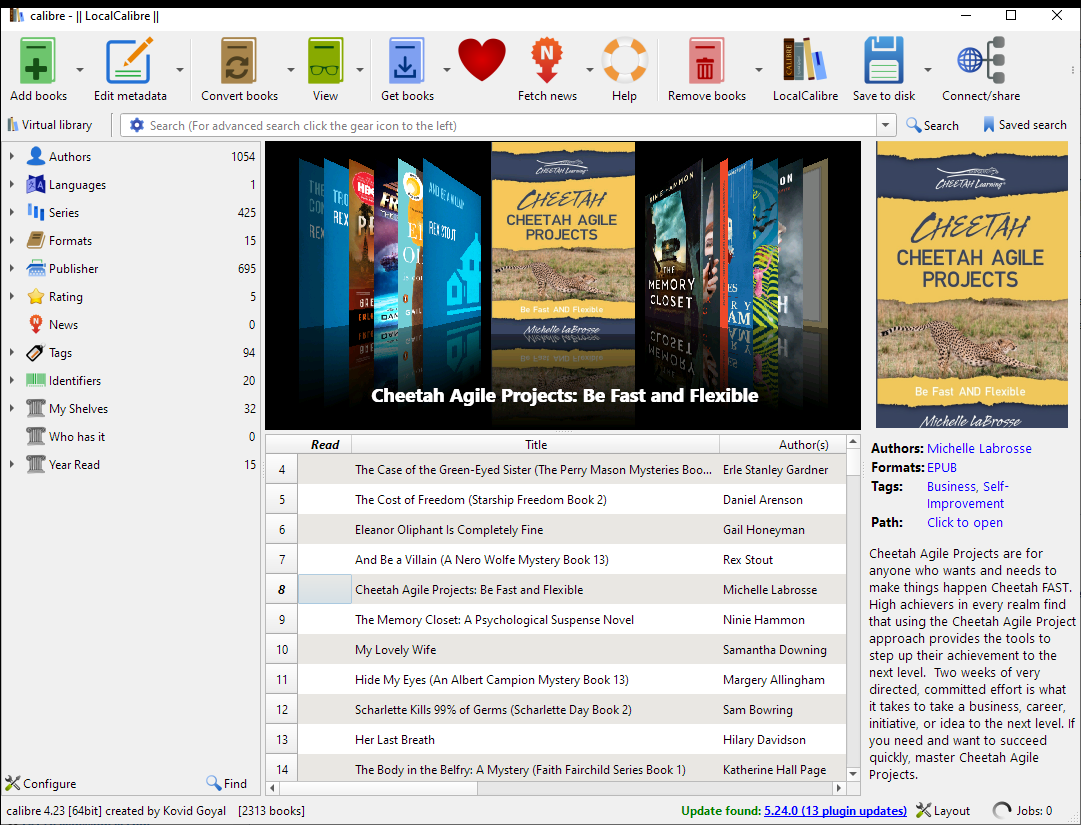 You can also un-select all books by left-clicking in the empty space below the last book in the list or to the right of the rightmost column. Either of these may be inconvenient depending on your book list layout. |