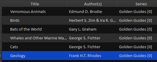 Note that you can set series to a hierarchical column (Preferences > Look & Feel > Tag Browser > Books with Hierarchical Items) and do something like Dummies.Dummies Cooking. I experimented with this a while back but decided against it. Also personally I just use a series index of 0 whenever it's non-chronological (e.g. my collection of Golden Guides). Last edited by ownedbycats; 10-16-2021 at 03:49 PM. |