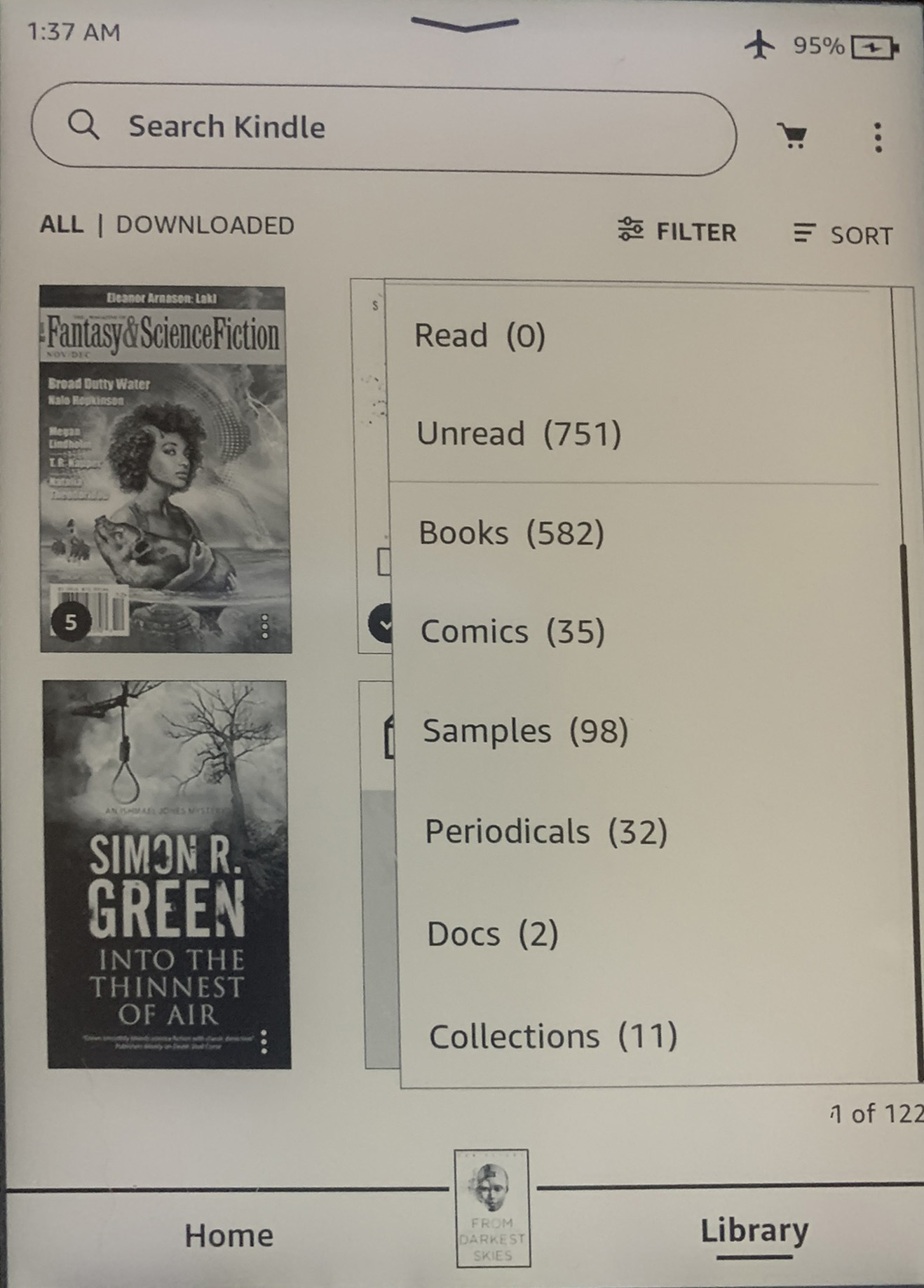 You don’t need to go to Home. Just stay in Library and open books from there. When you close the book, you’ll be back in Library, not Home. I don’t use Airplane mode ever, but assume whatever it is showing there was downloaded at some point in the past when Airplane mode was not on and it connected. Last edited by tomsem; 11-01-2021 at 03:09 PM. |