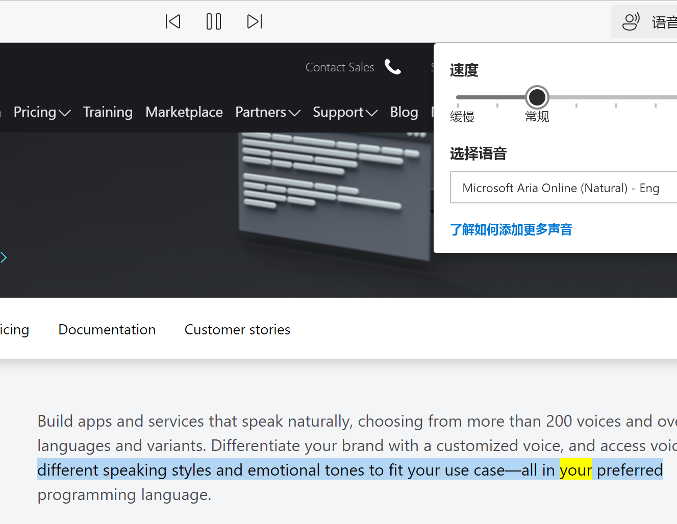 https://azure.microsoft.com/en-us/se...stomer-stories This online speak very natural.much better than win10 loacl TTS.So I ask there is some plugin can make calibre-bookviewer using microsoft online TTS,just like new Edge webbrowser. Last edited by BetterRed; 03-02-2021 at 05:12 AM. Reason: Oversize image - thumbnailed |