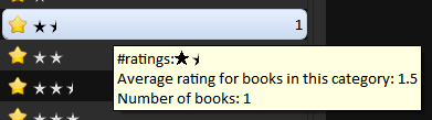 Now a lot of tag browser items have "books in this category are unrated" in the tooltip. Is there a way to hide this or tell it to use my custom ratings column? EDIT: The custom ratings column is using itself: I looked through tweaks and didn't see anything though. EDIT: I opened a ticket requesting a tweak to set a custom ratings column for this.