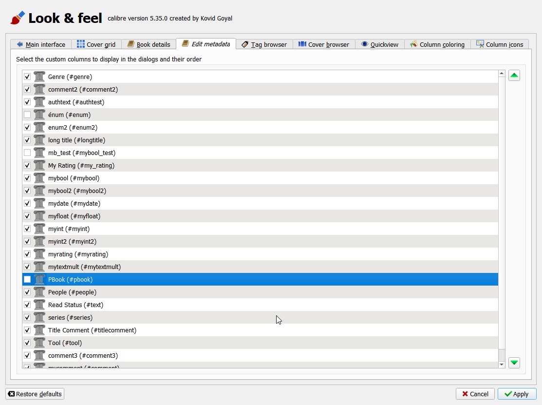 Given my druthers I'd prefer something like this: Maybe as another column of check boxes in the Add your own columns list, or perhaps in a Look & feel->Book list tab (that doesn't exist - yet) ![]() BR Last edited by BetterRed; 02-01-2022 at 07:35 AM. |