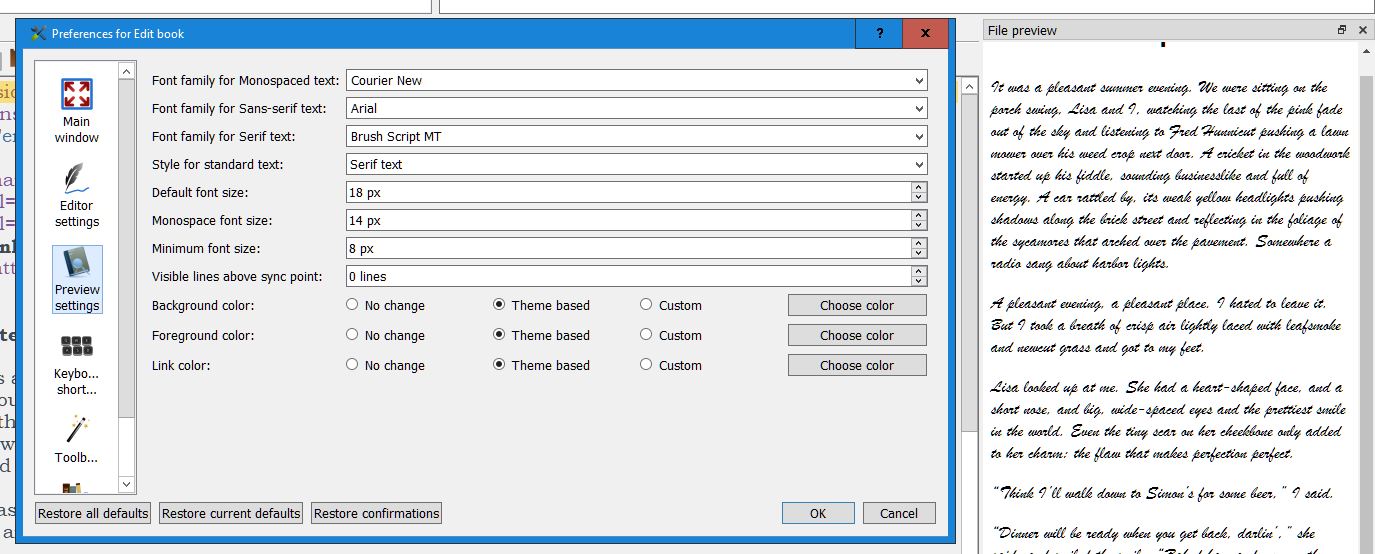 In the editor, I have a problem with the file preview. If I select the font I want to use for the file preview, it does not properly display and I see some serif font instead of the font I want. But if I embed the font, the file preview will display this font.