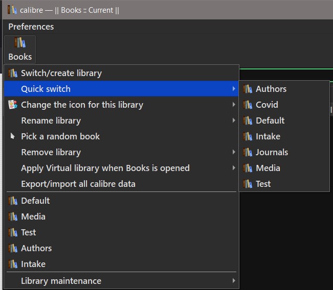 Hi! I have 12 libraries in Calibre. The problem is that the list that comes up when I try to change libraries will not hold that many. I really need to switch to a library that is not shown in that list.