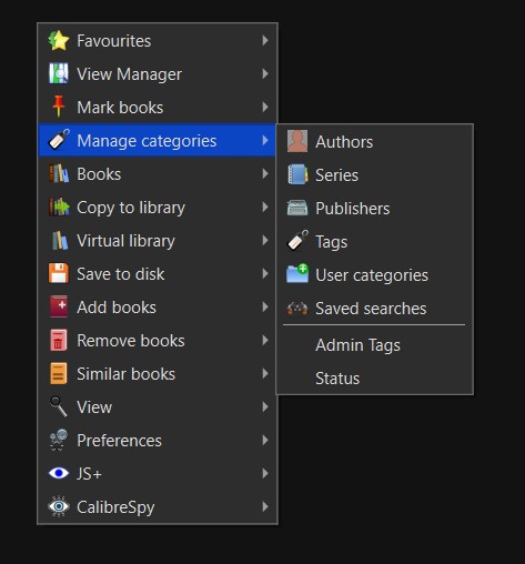 FWIW - the Manage Categories feature is now available as a separate tool that can be put in toolbars and/or menus. I have it in my book list context menu, viz: