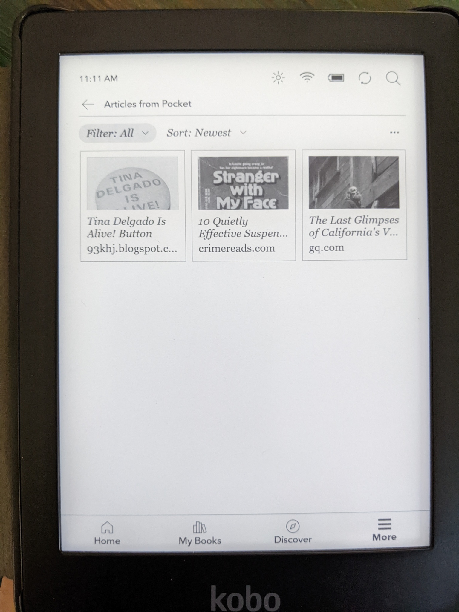 For some reason, Pocket on Kobo doesn't show all articles I've saved to Pocket. It only shows the most recent.