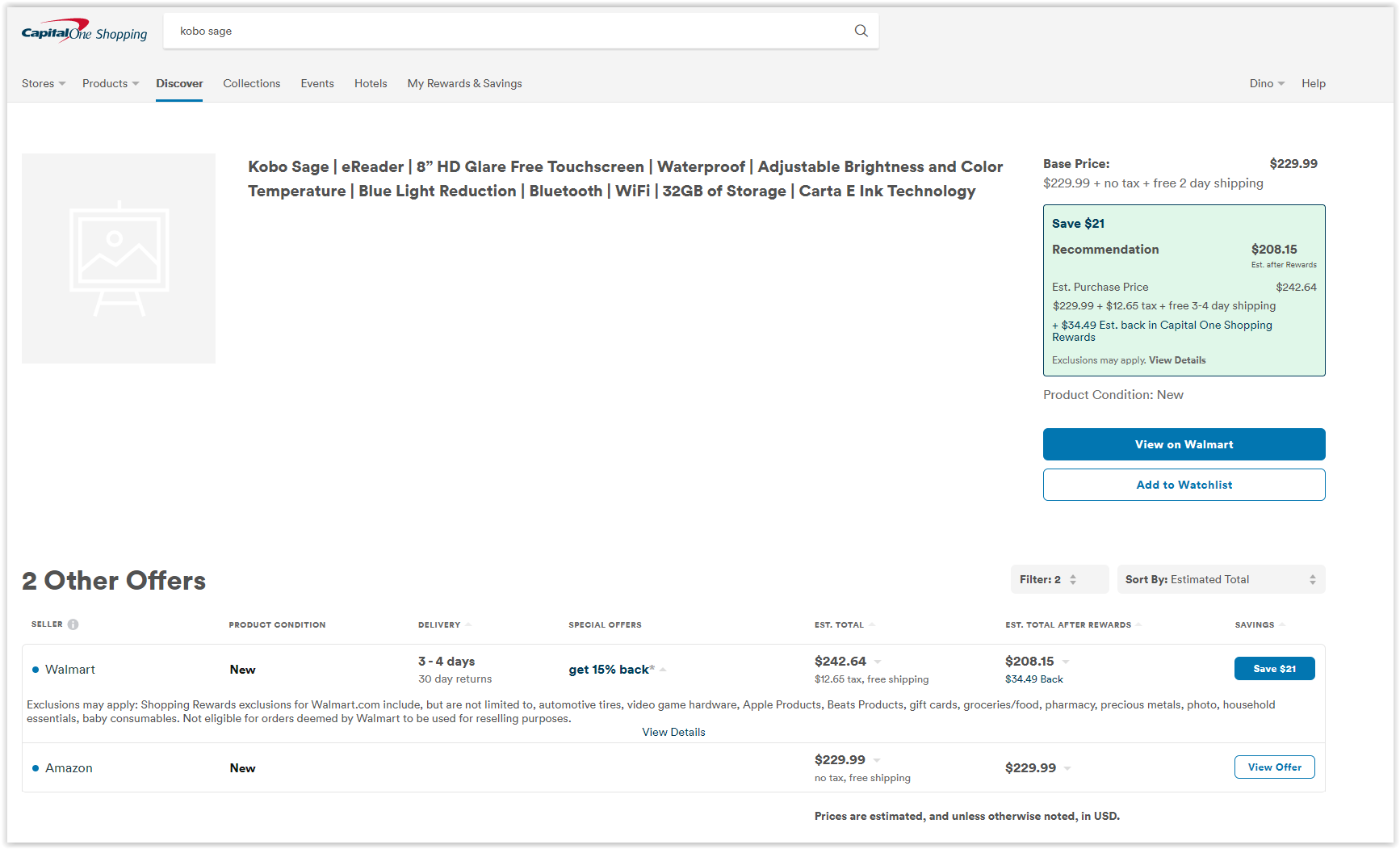 Walmart has the same pricing as Amazon for Black Friday and if you have a Capital One CC and have the Capital One Shopping app it shows 15% rebate from Capital One.