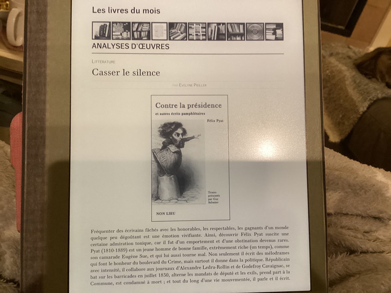 Thanks so much for this. I just subscribed to the French version. I sideloaded both the azw3 and PDFs as send to kindle does not work with azw3 and the writeable PDF that sending wirelessly provides is too faint. The sideloaded azw3 and PDF look really great. The epub would not work with send to kindle. It’s great that they have provided so many versions. I’ve attached pictures - the first one is of an article in the azw3 file, the others are all from the PDF. I think it looks wonderful, and wish I could do this for my regular newspapers. Good for Le Monde Diplomatique. Now to find out if Le Monde itself does anything like this. ETA: It doesn’t. ETA: I transferred the epub eventually, after adding it to Calibre and 'converting' it to an epub! ![]() Last edited by Pjama; 01-20-2023 at 02:59 PM. Reason: Added how to transfer the unwilling epub |