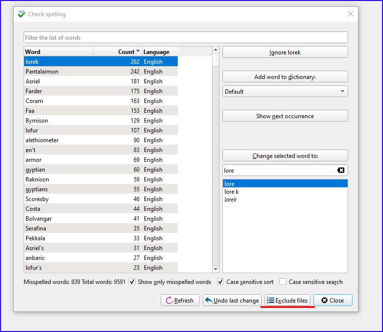 Didn't the Spellchecker Used to Remember Excluded Files?