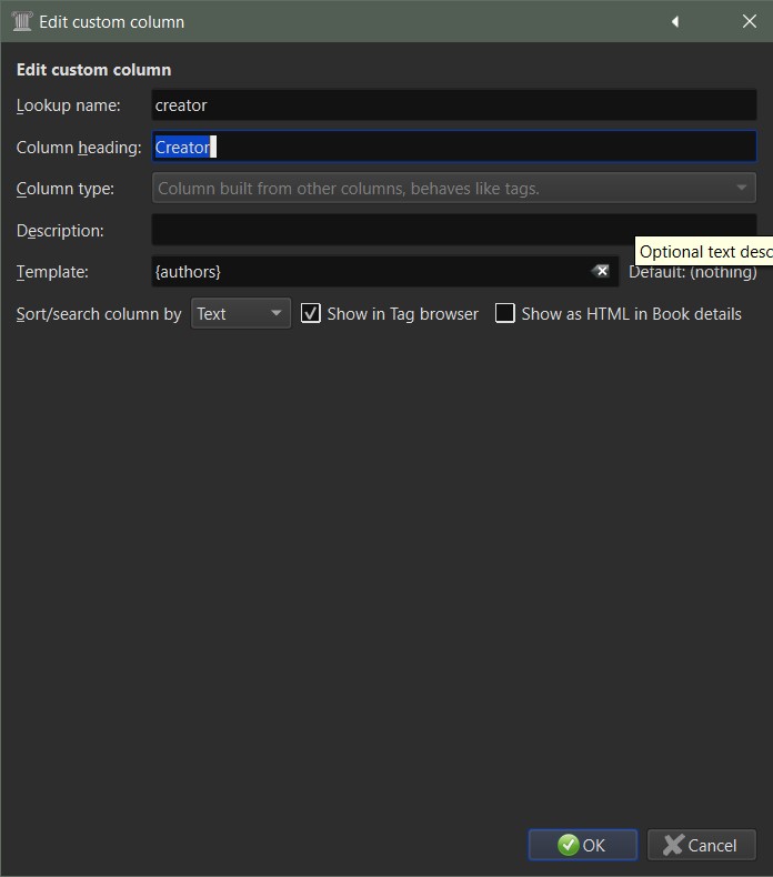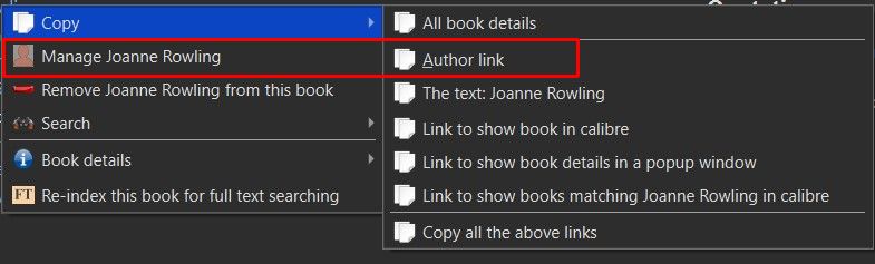 the virtual column, in this case Creator, does not acquire all of the attributes of the real column, i.e. Author: Author I think i know why, but would welcome an explanation from the developers. From my perspective the important items are Manage xxxxx, and xxxxx (Creator) link options. Why do I want this, because I get irritated whenever I see something like this: rather than this: I'm open to suggestions, but my preference would be a means by which I could assign a different Column Header to the authors column… ditto the id, identifiers, series, etc columns. BR Last edited by BetterRed; 04-23-2023 at 03:08 AM. Reason: typo |