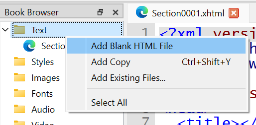 Not sure you were asking this as well, but you can add a blank page by right-clicking on the "Text" folder (or any current page IN the folder) and selecting "Add Blank HTML File" from the contextual pop-up. (see attachment)