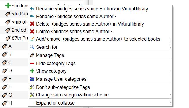 If you click the tiny arrow, (IF partitioned tagB1) In the Tag Browser you click on a tag and it gains a Green +, (see TagB2) that shows the books with that tag in the Library IF you right-click the entry, you get a menu: (see tagB3 Rename and Delete are the most common that I use. Rename has value lookup help just, like other places in calibre. That allows quick normalization of the valies Last edited by theducks; 08-01-2023 at 01:32 PM. Reason: fixed attach1 |