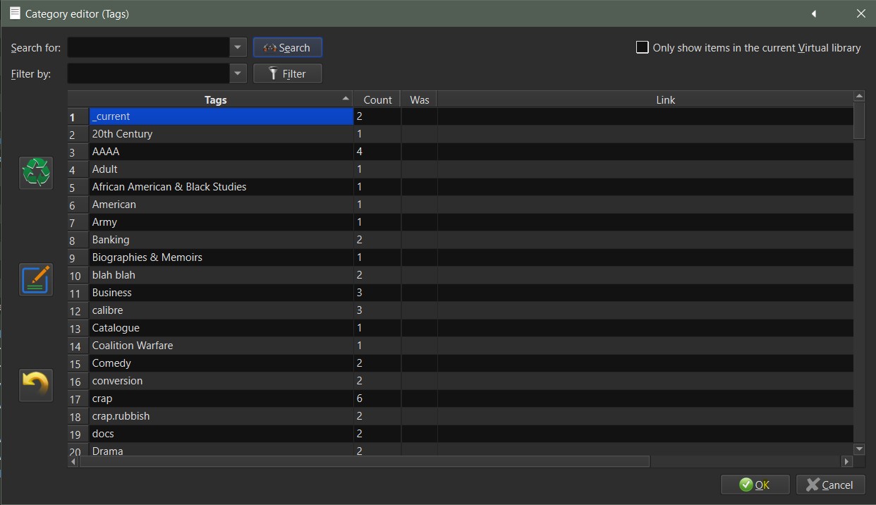 Deletes and changes aren't committed until OK is pressed. So, it ought be possible to pop an abbreviated list of 'books' that use a Tag, Series, Publisher, Author, etc prior to deleting, or changing it. Just a matter of someone wanting to do it. FWIW I agree… it's frustrating at times. BR Last edited by BetterRed; 08-01-2023 at 09:17 PM. Reason: grammar |