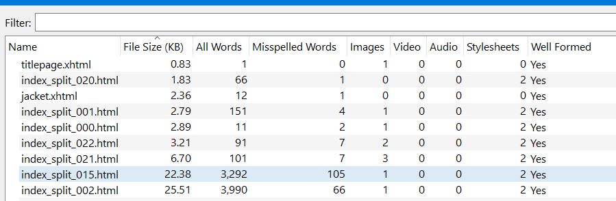 Tools/Reports shows word count for entire book. Is there some method for showing word count for a single xhtml segment? Best regards, Pop