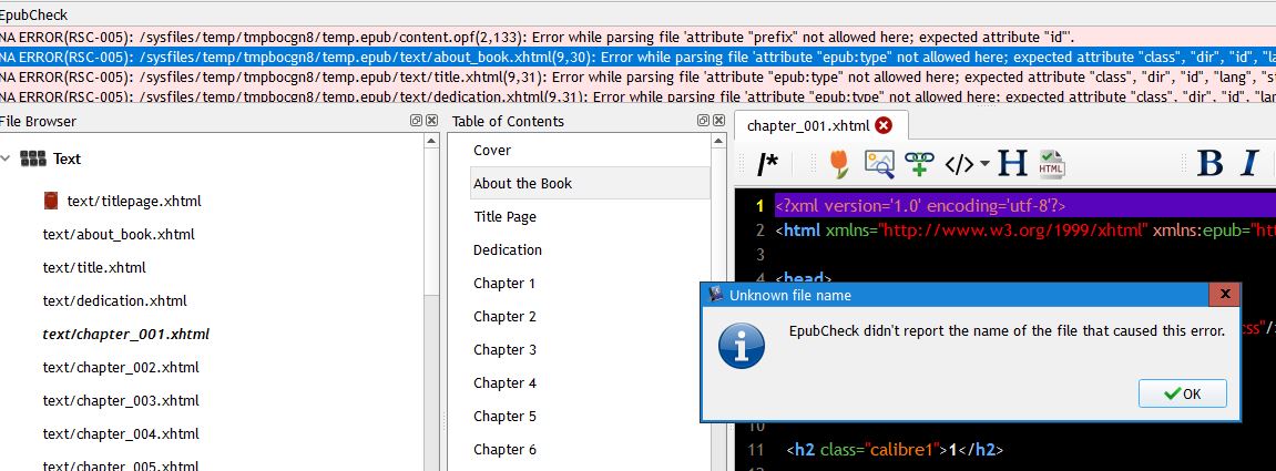 @jackie_w: There appears to be a bug in the plugin, because the error message should only be displayed, if epubcheck didn't report a file name.