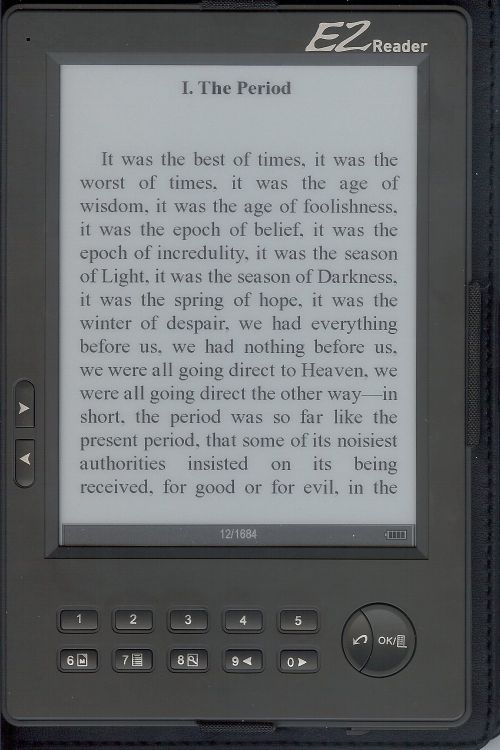 For MOBI there are only 3 font sizes and only 3 font choices. The first two attachments are 100 ppi scans of MOBI on the EZ Reader, medium and large. These are low res scans, so they are fuzzier than the actual screen. Some of the other formats allow user provided fonts and have 5 font sizes. The 3rd and 4th attachments are large and extra large for a FB2 ebook. With the latest Hanlin firmware the same display software is used for RTF. I don't have scans of PDF, but it does not reflow but rather zooms in landscape mode. The same is true of some other formats (e.g. ePub).