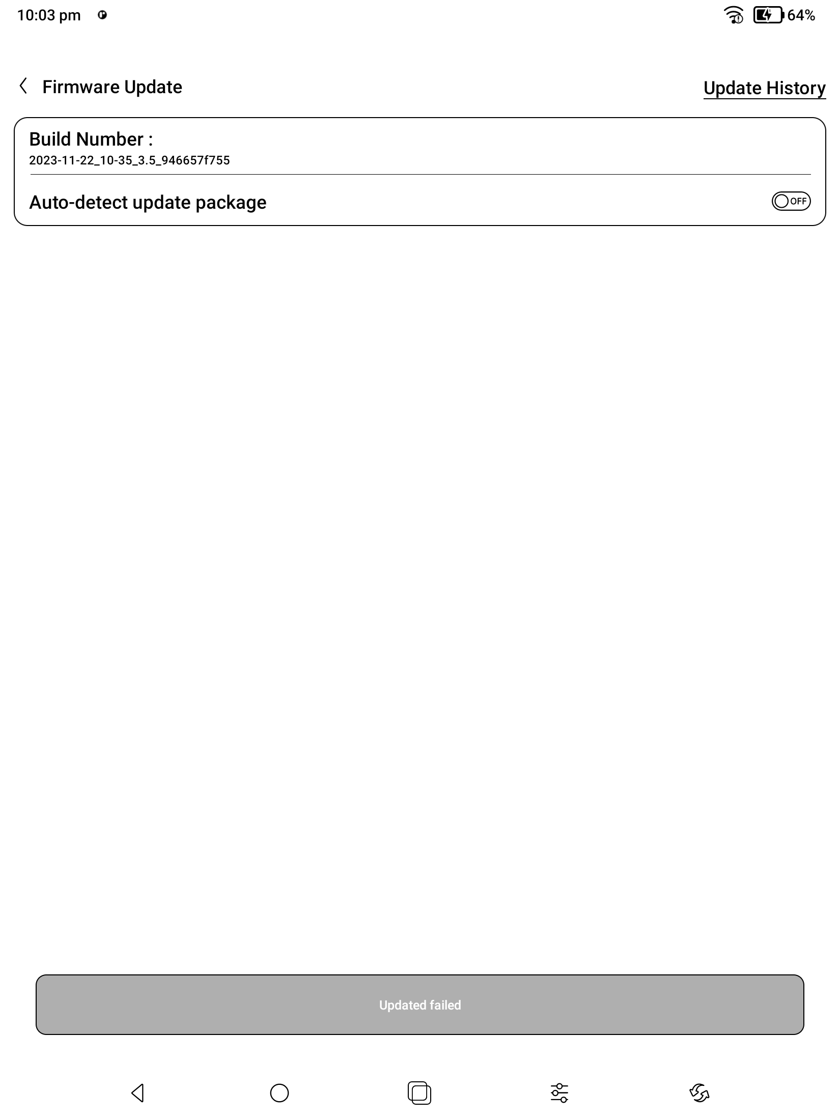 I'd almost suspect the controller built into the Eink panel itself. Me, I'd probably reseat the orange flex PCB connector on the panel. You did check that the version changed to 3.5? |