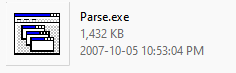 I also found parse_bin.zip, downloaded around 2013, containing a Parse.exe (timestamp October 5, 2007, no useful information in file properties). Any idea what this might be? Google not help. Not flagged by Windows Defender, but running unidentified old executables not really great idea. |