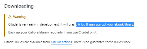 A lot of discussion there by people that either don't how to work Calibre, or don't understand what it does. Calibre isn't a multi-user library system, like a lending library or video library has. Nor is it a document management system for offices. It's primarily to manage ebooks (and thus ebook metadata) for an ereader for one person, though it can do more. The conversion, epub editor and viewer are important tools to complement the basic ebook repository, metadata editor and transfer features. The 3rd party plugins make it an even more useful tool. There is nothing wrong with the calibre GUI for what it is that it does. I predict Citadel will never make it and it's far too early for a one person project to be on Github. |