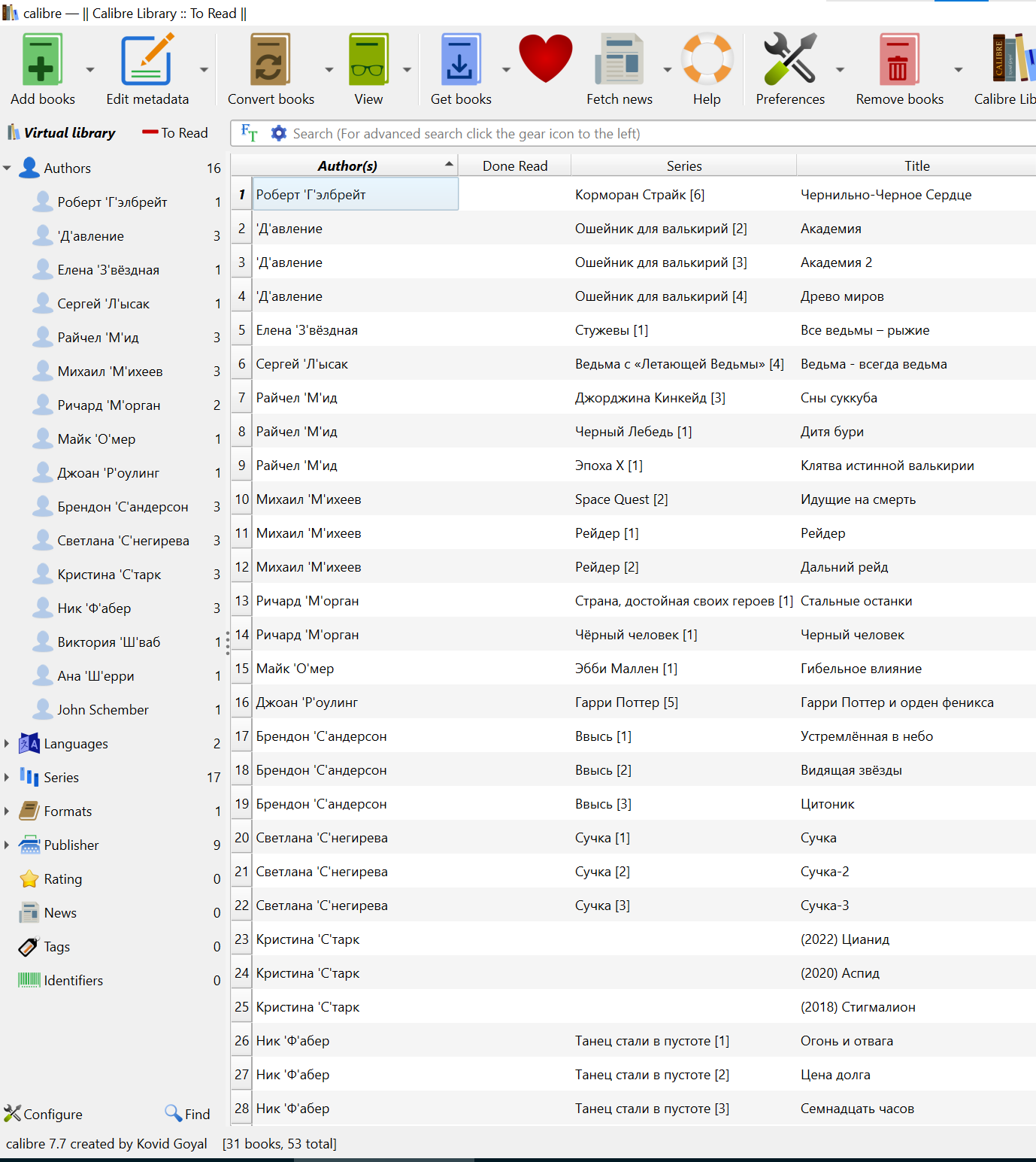 - hold your horses a bit - I am newbie DB's in general and in Calibre in particular... 1. I understand that all the books shown in Book list view must have an additional property 'HAVE READ', whose value must be 'YES' or 'NO' (checked or unchecked field) 2. books which attribute 'HAVE READ' is marked 'YES' will be somehow filtered out 3. as a result I will have Book list view filled with unread books only correct if I am wrong so far P.S. I have in Calibre DB books in EPUB only P.P.S. I have Kindle device only and Kindle apps on iOS and Android |