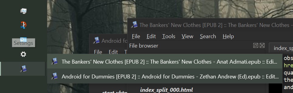 Preferences > Main Window > Restore state of Previously edited book when opening it again. It works as expected but only when I quit the application. Is there a keyboard shortcut to close the currently open file without quitting the program? I ask because when opening a second epub to edit, from the menu, the above option does not work. The previously opened epub tab layout is not saved. To sum up, is shutting down the entire program the only way that option works? |