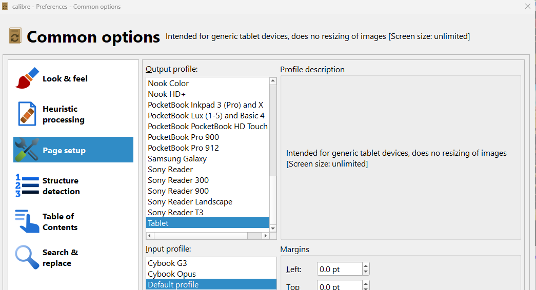 Looking at your images, why not just leave the output profile at tablet? I can't see many places where leaving the output profile at generic e-ink (600x800 display) or Default profile (1200x1600) would have many advantages over tablet which does no image resizing.