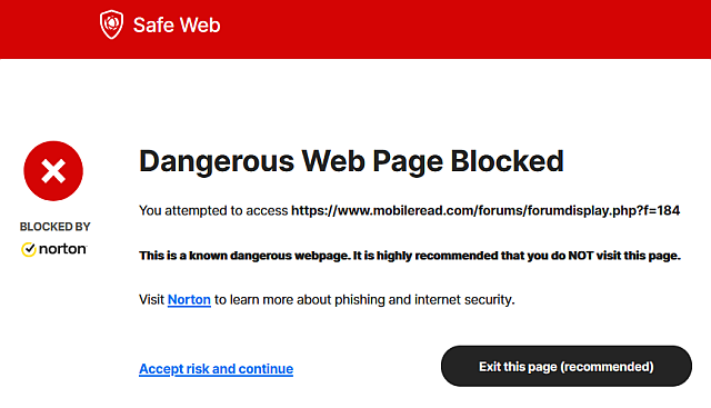 I haven't been on in a couple weeks and just today Norton Antivirus is complaining about your site for the first time that I've noticed, with the attached message on most pages ("Dangerous Web Page Blocked ... This is a known dangerous webpage. It is highly recommended that you do NOT visit this page.") Any idea why the change? Is it your advertisers?