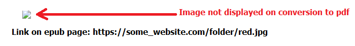 I have an epub with images which I have linked the images by url to a server folder. But if I convert the epub to PDF the image does not display it shows linked images as a blank as shown in attachment.