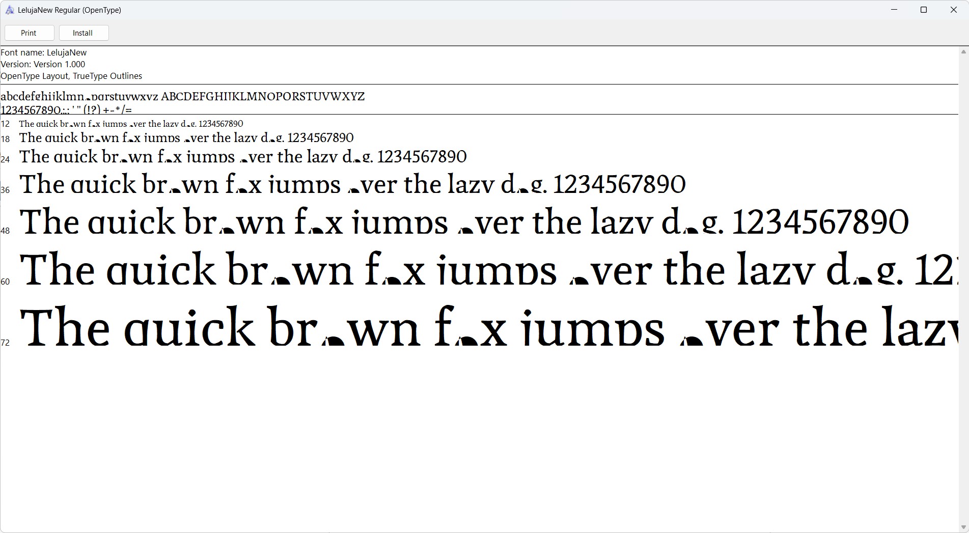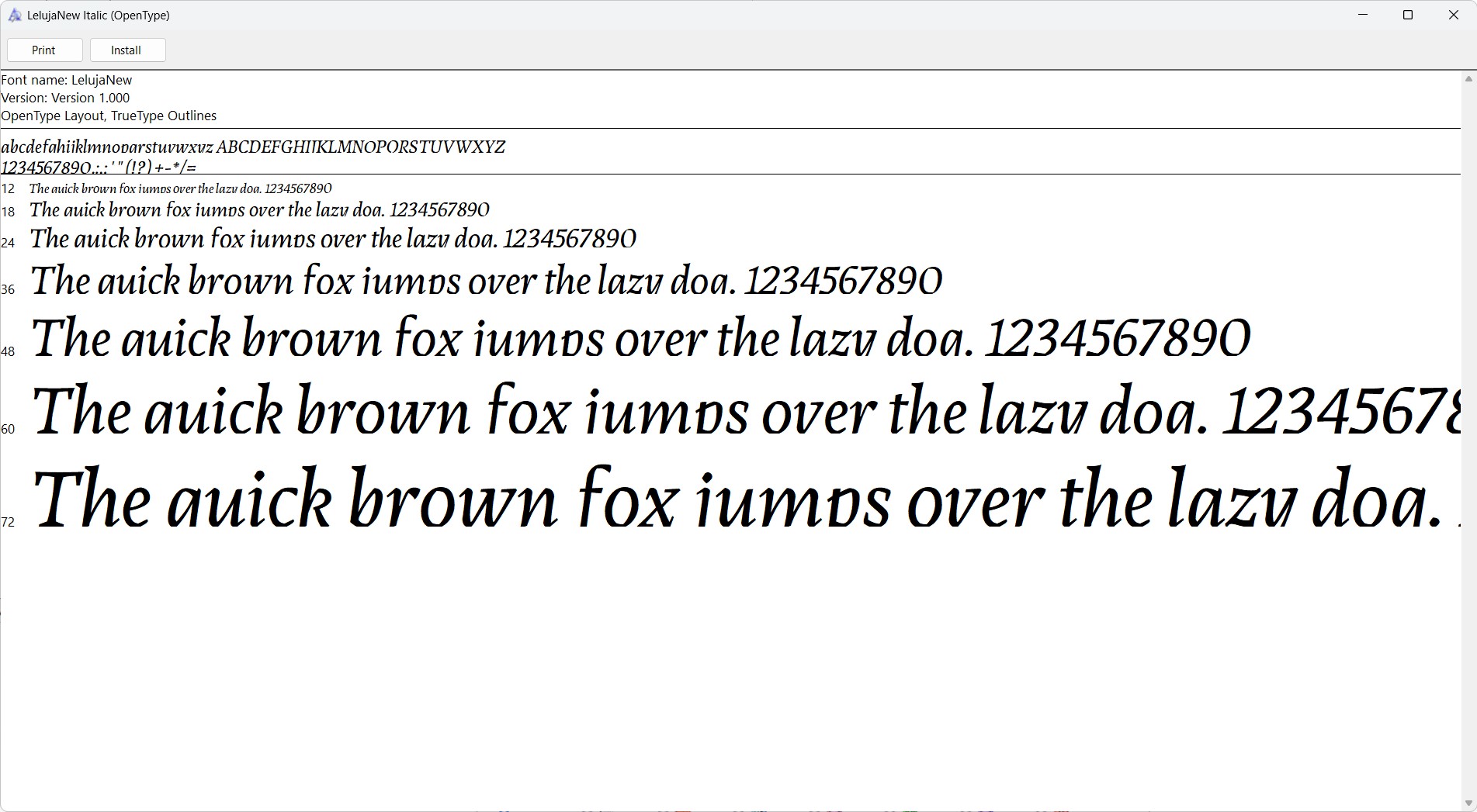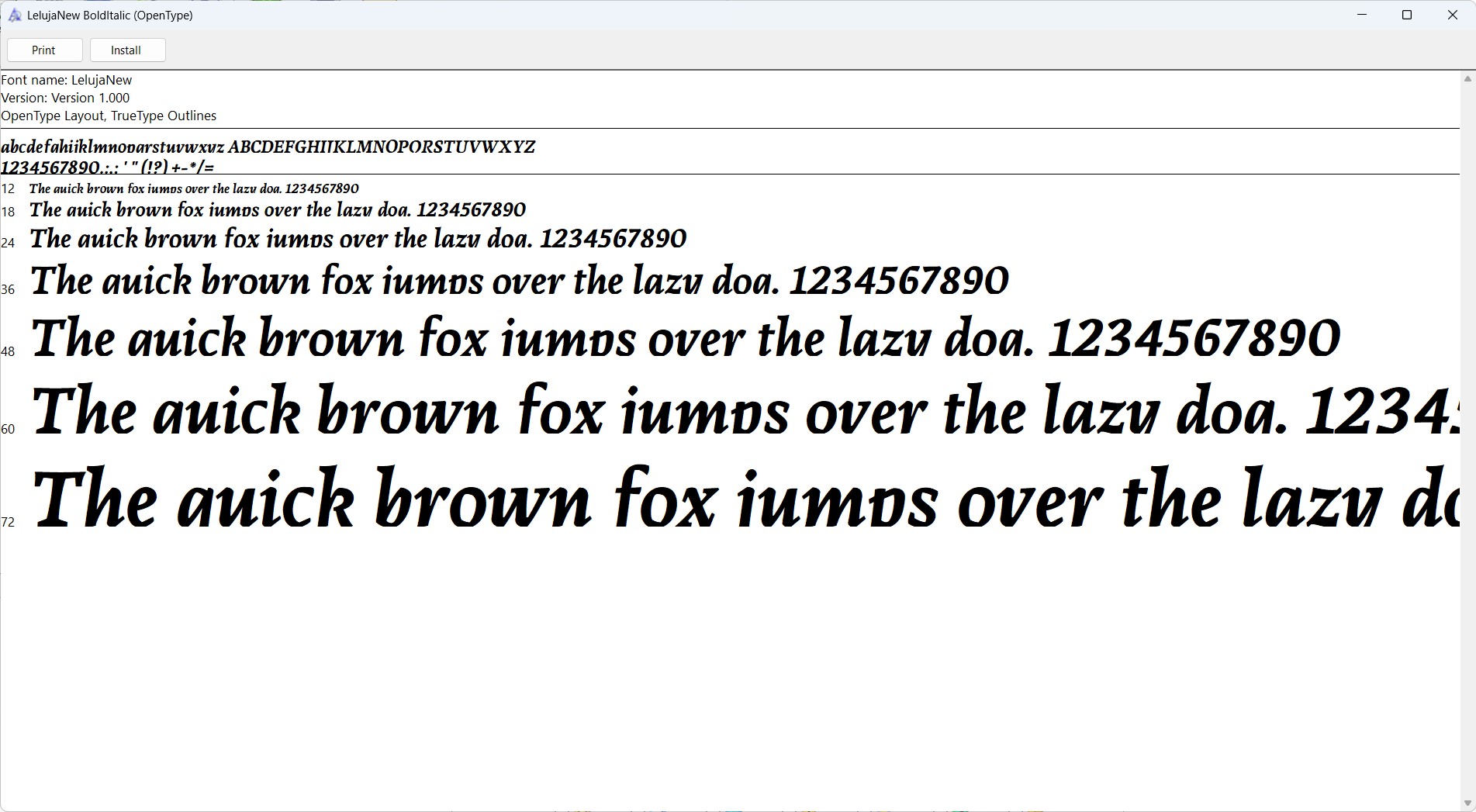 And here is the info for the Uffizi font. I think the issues are similar to the first font I posted, but I can't figure out if there is a specific name field/value that I need to change in FontForge to make it work properly.