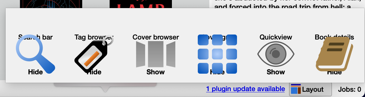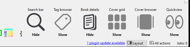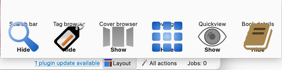 Regarding Layout menu, I usually have all buttons show but I've temporarily set it like you and I don't get the overlaps on Windows and Calibre 8.01: |