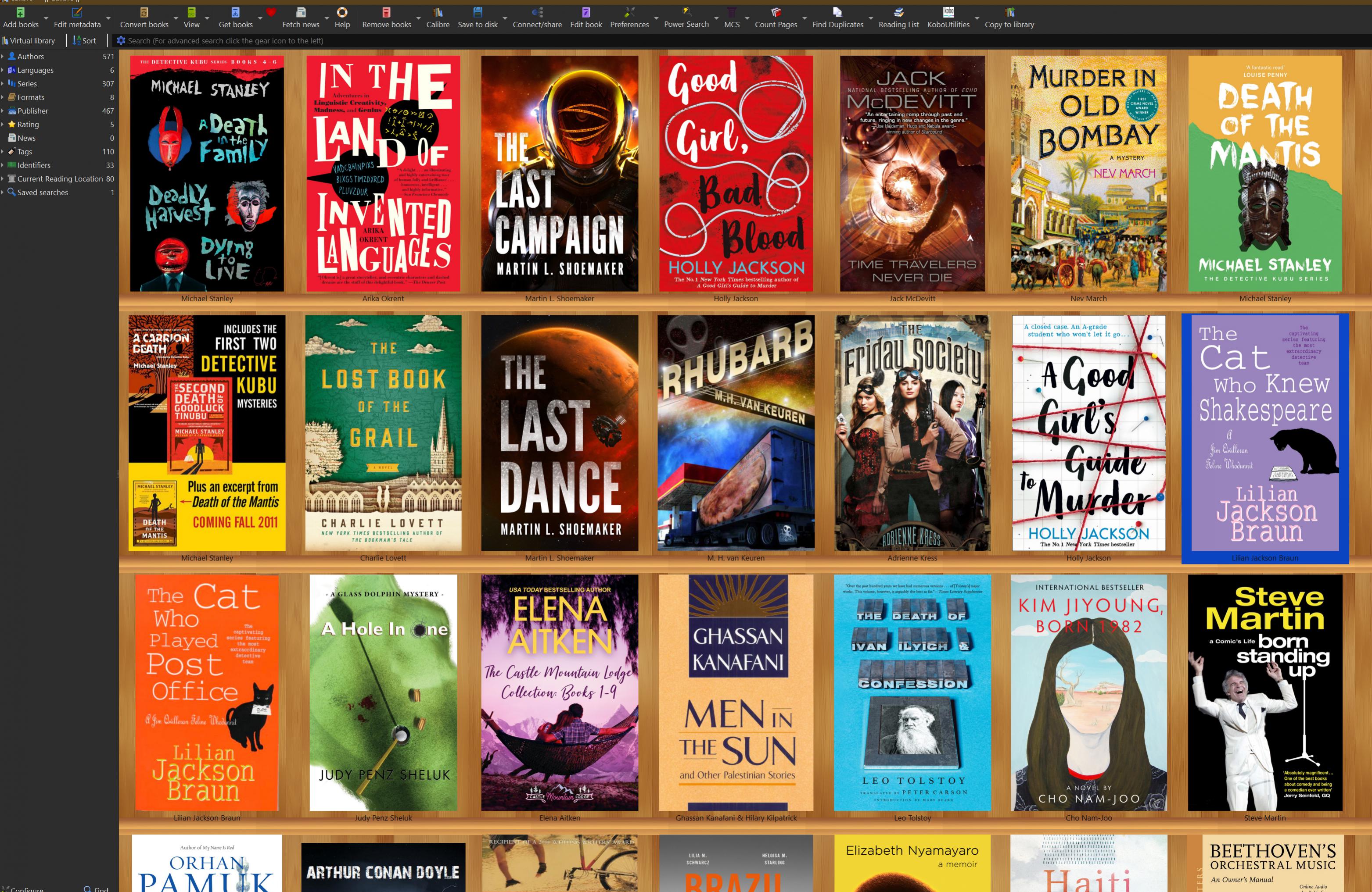 First off, with calibre, I like it for converting books, editing metadata etc but the actual program itself is not intuitive for me personally- I can do the basics but I feel like I need a qualification in computer science to get the most out of it. Secondly, whilst it can display all the required information IF you click on each individual book, it cannot (to my limited knowledge) display books in a bookshelf view. When I open it up, all I see is a list of books, authors and series, I then need to click on each book separately to se the information in the right hand panel, whereas when I see the covers laid out in front of me I tend to remember which book is which. Lastly, my ebooks are saved in a folder on my laptop - if I were to add every single one to calibre, I'd then have another file of each ebook in the separate calibre folder so would essentially be using double the memory for each book - when my book folder alone is already 10gb it seems a bit ridiculous to do that. What it essentially boils down to is personal preference really - most places you can catalogue your books will probably all allow you to see similar information, it just comes down to which format you most like the look of and ease of use. For me that's Libib although if I had to pay the Pro version rates to use it, I would probably settle for another free catalogue instead tbh. |