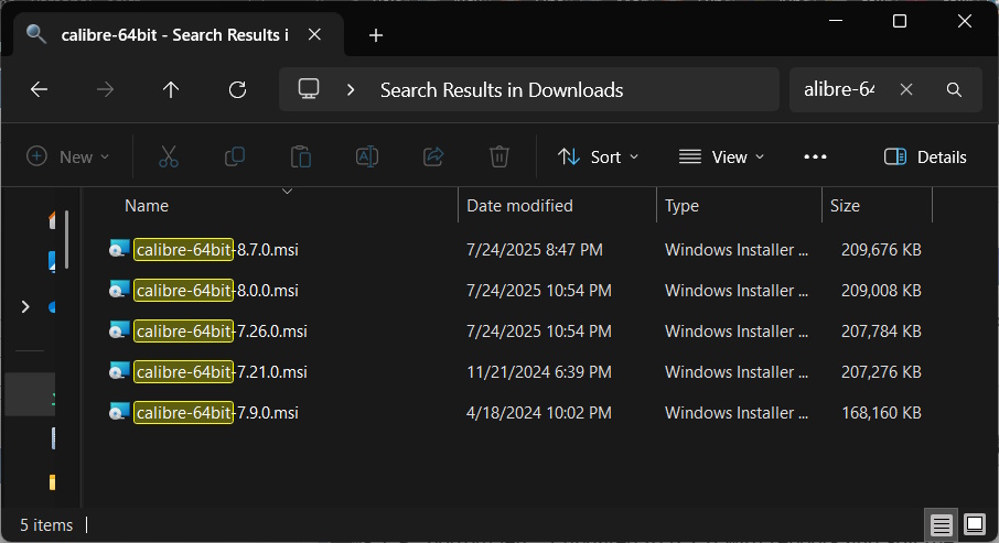 Right clicking the shortcut, properties, points to "C:\Program Files\Calibre2\calibre.exe" Open File Location, right click calibre.exe, properties, shows File Version 8.7.0 Running calibre.exe from Command prompt in the folder itself, starts Calibre which shows 'calibre 7.9* created by Kovid Goyal' (bottom left on status bar) and 'Update found: 8.7.0' bottom right. Windows shows under Installed Apps - Calibre 8.7.0, the executable shows 8.7.0, so it shouldn't be saying Update found and correct version should show. Also, I uninstalled Calibre, and verified the program folder was removed and searched for calibre.exe on all drives, which doesn't show any other executables. Ran 8.7.0 install and no joy. One thing I did notice was that under AppData\Roaming\calibre\gui.json was that the last line in the gui config file (which I do not edit via the .json) "windows_register_default_programs": "7.9.0" whereas on a different computer that 8.7.0 was successfully installed it shows "windows_register_default_programs": "8.7.0" So for giggles, I backed gui.json up and manually changed that last line from 7.9.0 to 8.7.0. When I started Calibre, it automatically changed back to 7.9.0 I checked my library via Library Maintenance - Check Library and there where no problems. |