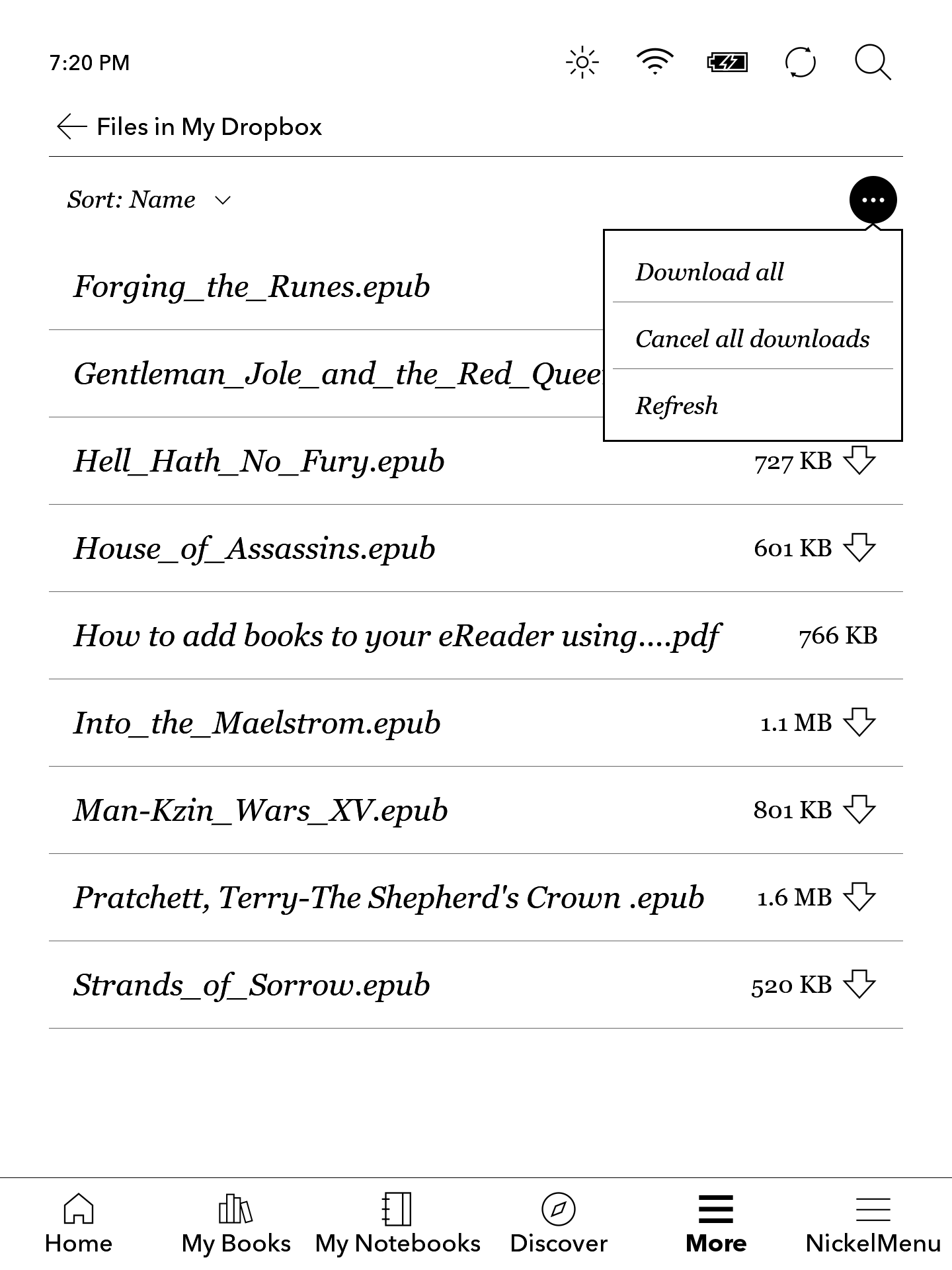 So, I sort out a selection of books, copied them to the Kobo folder then sync'ed the Libra with it. Most of the books copied over, some didn't. And I don't know why. I deleted the offending books from Dropbox and copied them back over and re-sync'ed. Same result. Then when browsing the Kobo's various menus I found the Dropbox one. I tapped it, a window opened to display the Dropbox folder's contents. In there I could see the non-copied/downloaded books. I tapped on one and it copied to to the reader. Is this normal? The books are valid EPUB files and can be read on the Kobo. Thanks. |
