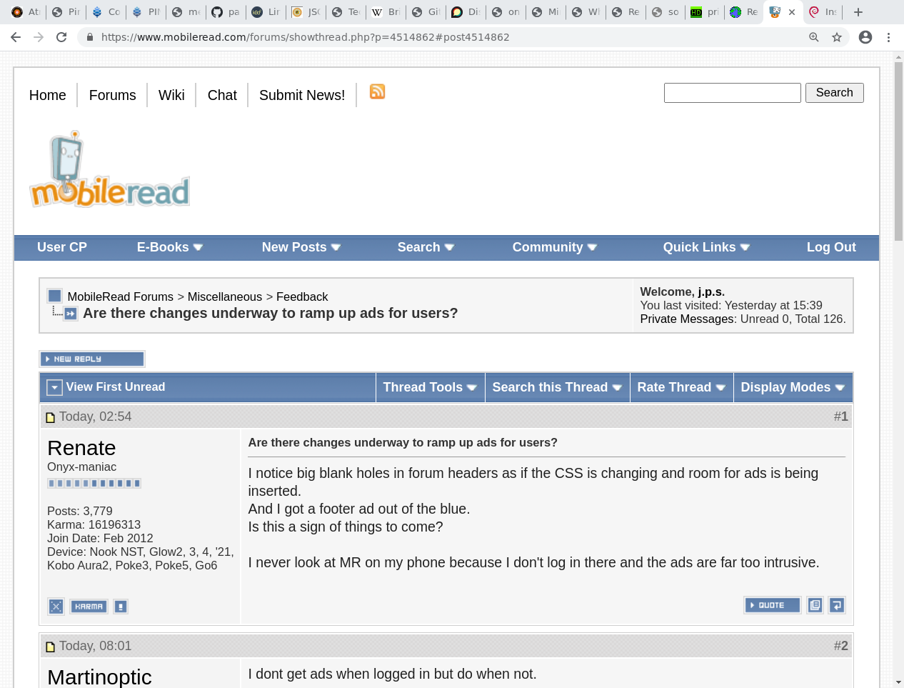 I notice big blank holes in forum headers as if the CSS is changing and room for ads is being inserted.
