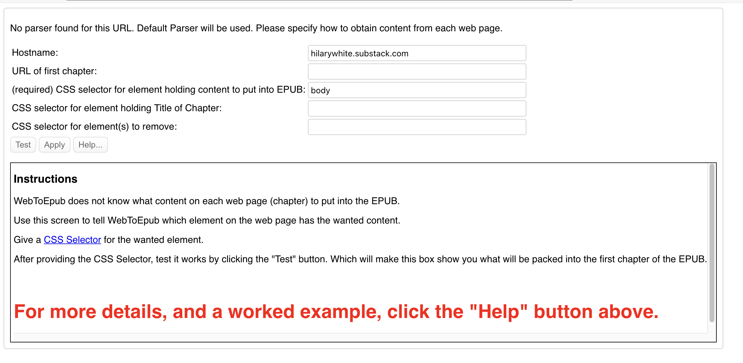 Quick question. Did you sign in on that substack page? Without signing in, I had to do quite some manual configuration to get the download and it was not pretty. I've included the setup from WebToEpub that I used after the test and the output ePub which is pretty ugly.