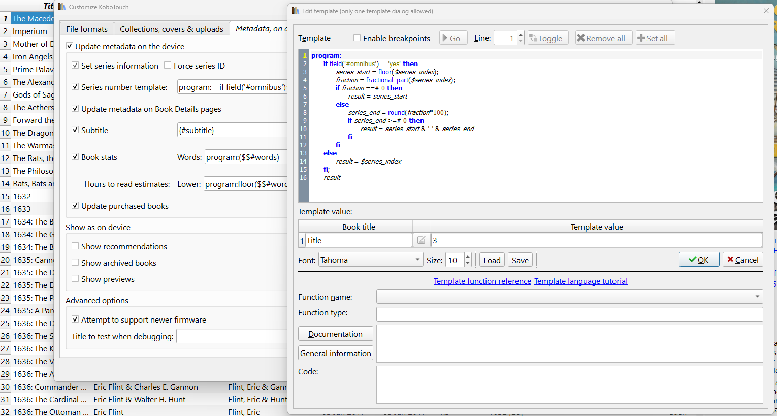 Edit: Just did a quick search and the thread was Kobo: Separate series index (text) and series_index (float)? with the template I'm using in message #16. You will need to create a Omnibus column add a checkmark to the use series number template on the third tab of the KoboTouch configuration and enter the following in the template field: Code: