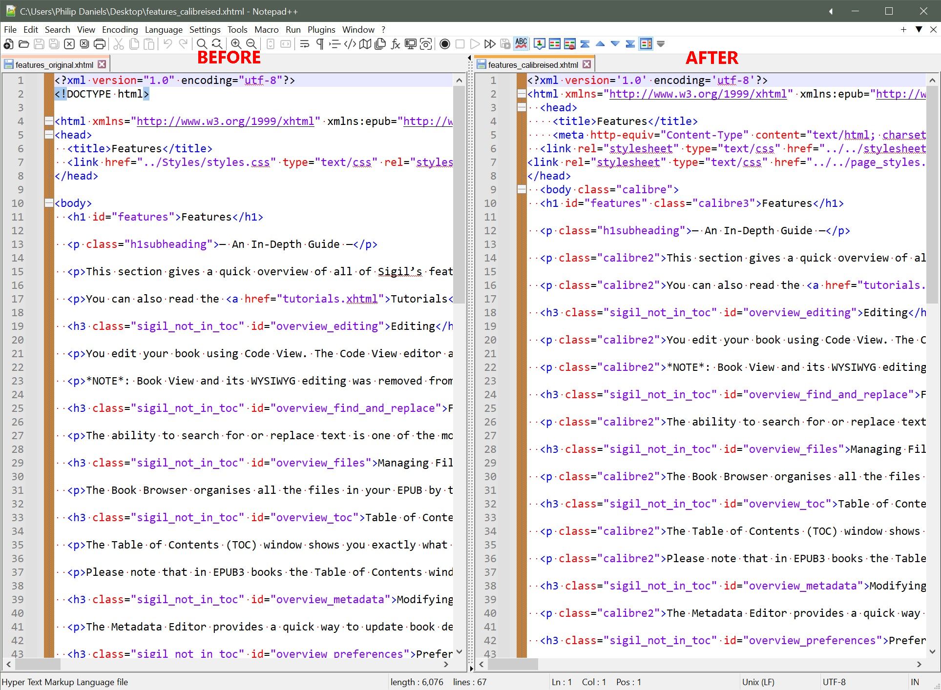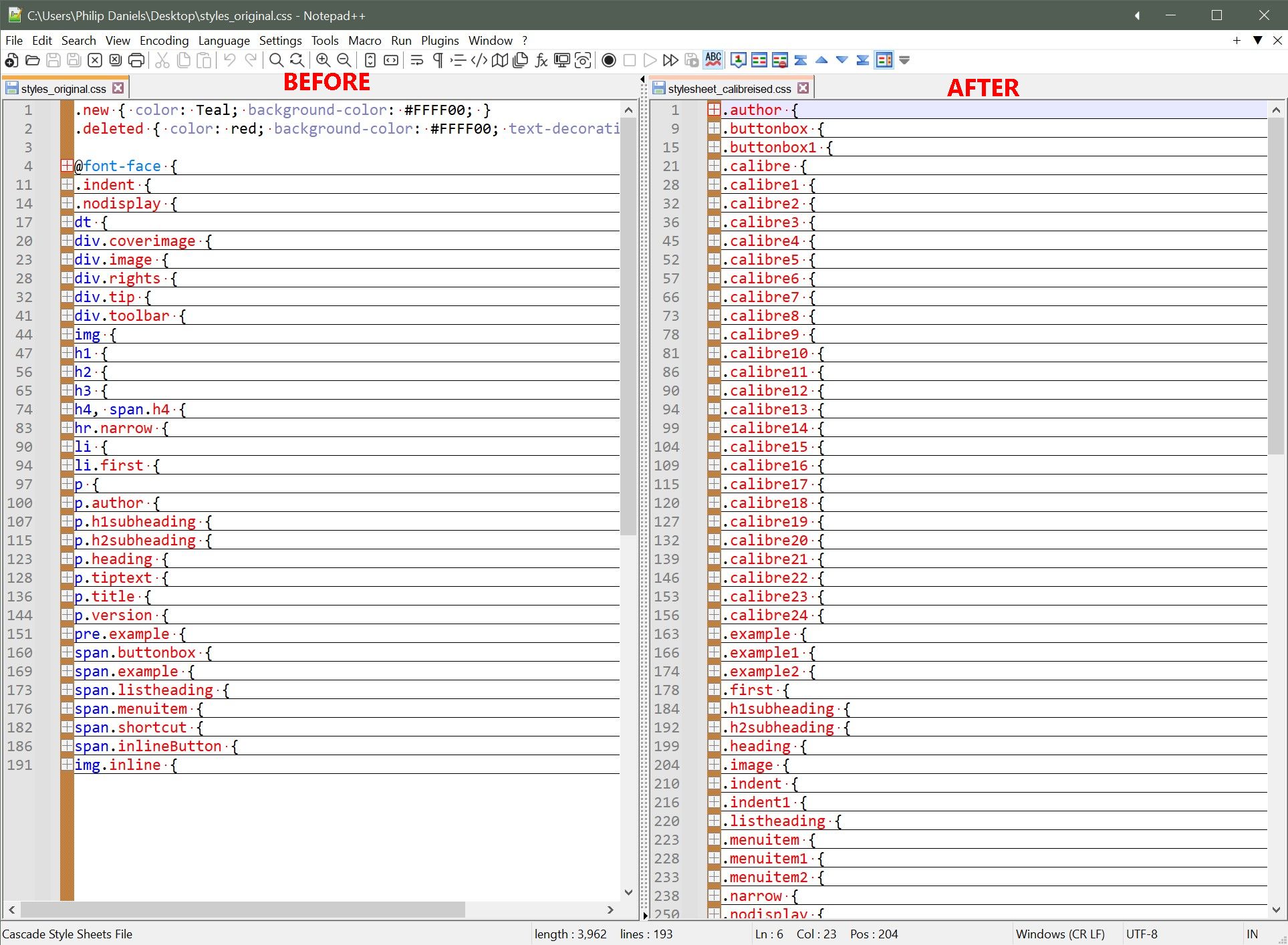 EPUB→EPUB conversion changes the style sheets and the text files: