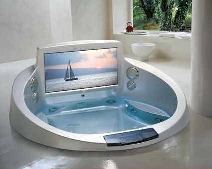 She said she had one even in the bathrooms! This got me to wondering. Who else puts TV's in their bathrooms? Do you have a TV in your bathroom (s)? |