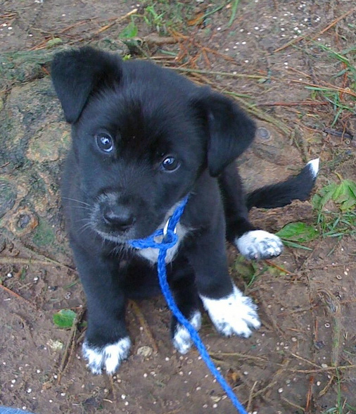 He's about 8 weeks old, and not much else is known. We think he may be a border collie mix. He's a scamp! |