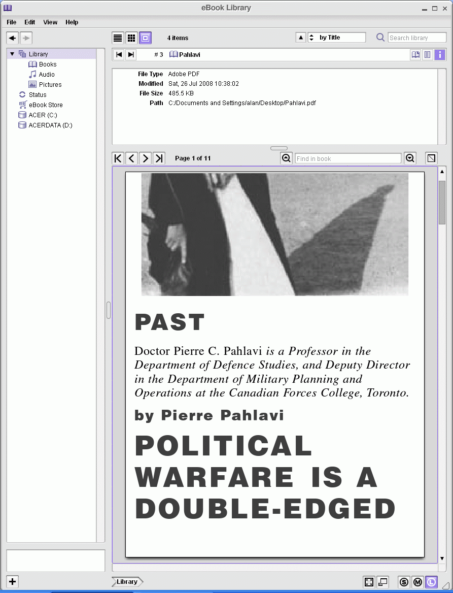 If you have PDFs with small-ish fonts, you can change the Sony 505's orientation to Landscape, which makes the PDFs much easier to read. |