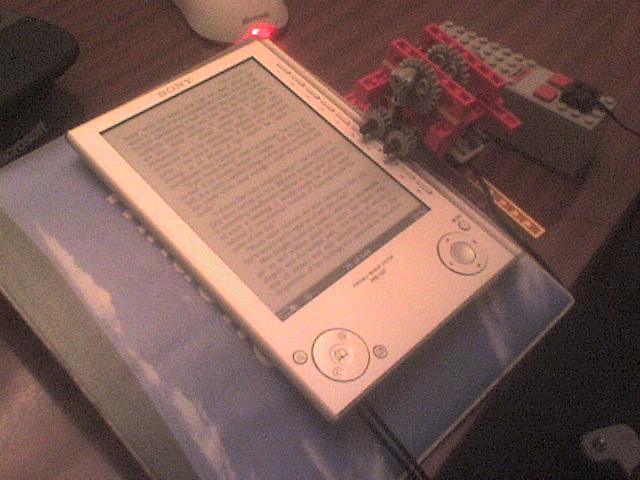 Hi all, I put this together last night. Its good for skimming books, and avoiding arm fatiuge. The key component is the worm gear, which slows the action down and increases torque. The cord is about 1 meter long. The page turn rate is about 1.5 seconds at the moment. It's made from lego (technic) sold around 1995. Sets with similar components are available so you could make your own if you want. It should be possible to make it nearly silent; this would be an improvement as you can tell from the video! Here's hoping the members over at the developers thread can get the automatic page turn going in software, so this is unnecessary. === Version 2 will make the second button on the remote press the page backward button (at the moment they both go forward). Last edited by gregcd; 09-09-2009 at 01:10 AM. |