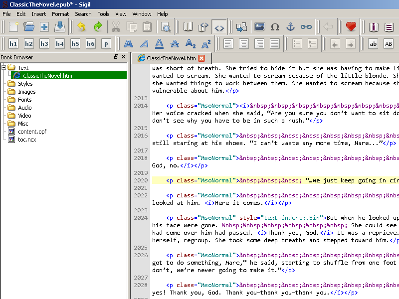 The ellipsis is on line 277. It's like: "Oh my_ oh my my my." (And there is a space after the ellipsis.) In Book View it comes out: "Oh my... oh my my my." Thanks! |