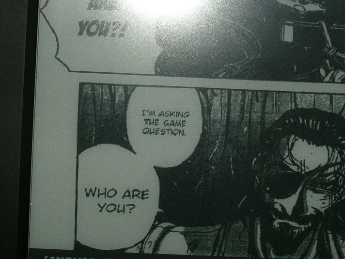 I read a lot of manga on my device, so i'm used to converting it to read on it. I can sure help you with the formatting I guess I resize everything down to 800 pixels, first changing the color mode of the document to RGB...Most devices i've seen use 600x800pixel displays at 160 DPI/PPI I format, and change to RGB as indexed images being resized down look terrible and have hard to read text, also my device has trouble reducing an images size, so I make sure it fits the exact dimensions of the screen So i've always changed the image sizes that way, if you Use photoshop you can setup an action for this and run it in batches...Then it's just a case of changing them onto a canvas etc of 600x800 pixels.. (you may have a problem if you use double spreads) in which case, try rotating them maybe?) As for saving, once all the images are done, I use "pdf presentation" in photoshop, saved as a "multi page document" In the compression tab -> do not downsample -> compression Jpeg + Medium High... EDIT: I noticed you mentioned a 5MB limit...most of my volumes (200 pages) average at about 32MB...so I don't know how you'd get past that...but this is definitely the best format i've found for reading... For me..this looks awesome on my device, admittedly all of my images are black and white... Hopefully this should give you an idea of how to format the images! any further questions just ask, especially since I only format stuff for myself...So my advice may not be the best =O But good luck all the same !!! (apologies for the low quality image, but my camera ran out of battery power and this was the only image taken, to show you an example of how it looks on a device using this profile) All credit of images goes to Kubo Tite and the fantastic Maximum 7 Last edited by Hobohodou; 10-25-2009 at 09:16 PM. |