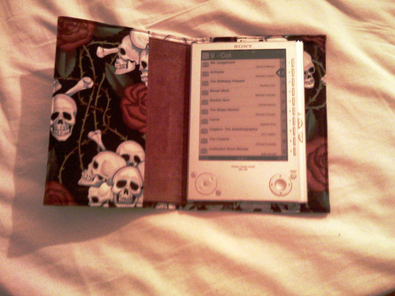 Lightly used PRS505 for sale, just over a year old (so out of warranty). Silver colour, currently in the red leather case. I also have a custom fabric cover from Etsy with skulls and roses on (I'm a heavy metal fan).