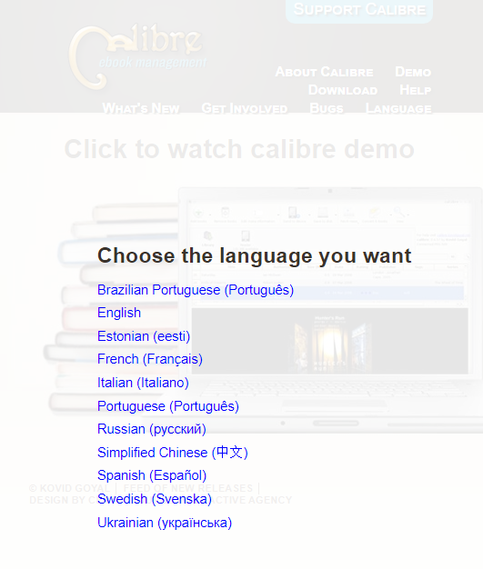 This is a challenge to all users: Let's sending some love back to Calibre in your own language by making the Calibre website available into more languages.