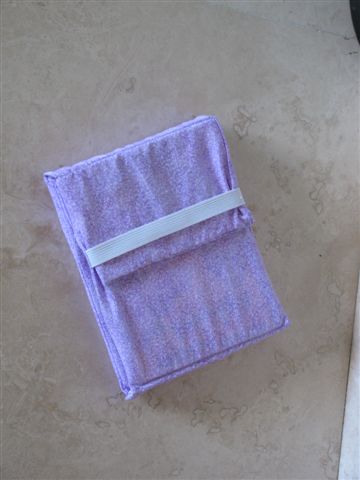 I've been toying with the idea of making my own case for my Pocket Pro, and recently I ran across this web site.  This is for the Kindle, but I was able to easily adapt it to fit the Pocket Pro.  I still prefer the case that comes with it, but it was a fun project last night while I was home alone.  I suppose I could have spent that time reading, but once the idea hit me to make a case, I just couldn't rest until it was done.  *l*  A word of warning... I am a beginner when it comes to sewing, so bear that in mind.  Someone with more sewing experience would have a much better outcome.  I imagine if a person knew what they were doing they could make a little window in the pocket so they could use the buttons without taking it out of the case, as well as make a little hole for the headphone jack.  It would probably even be a good idea to sew a little elastic thingy (yeah, I'm real technical   ) at the top to hold it in place a little better, especially if the bottom pocket was smaller to allow the use of the buttons.  In any case, it will work well when I want to prop my Pocket Pro up on the table when I'm eating my soup.   |