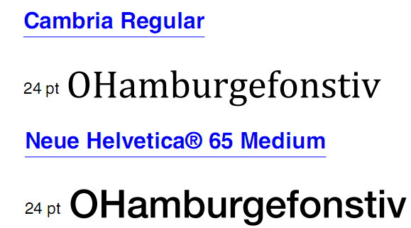 Merke: das sind Screenshots von PDF Dateien von LinoType, haben also überhaupt nichts mit eInk Displays zu tun, und dienen nur dazu, mein Gefühl zu unterstreichen, das die verwendete Schriftart sehrwohl wichtig ist, um den "Schwarzwert" bzw "Kontrast" eines Displays beurteilen zu können. Also für meine Augen wirkt die Helvetica um einiges "schwärzer" als die Cambria, ich kann mich auch täuschen bei meinen 6,5 Dioptrien
