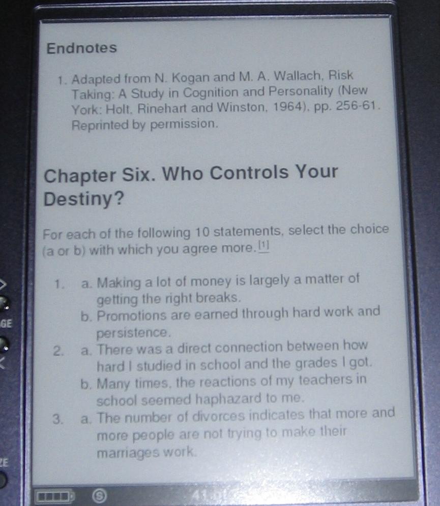 Here's a sample of one of my htmldoc formatted books. Sorry for the photo quality; the LCD on my camera is busted which makes taking photos a challenge as I never know what the settings are. But as you can see its very readable; any blur is the fault of the camera and me, not the reader.