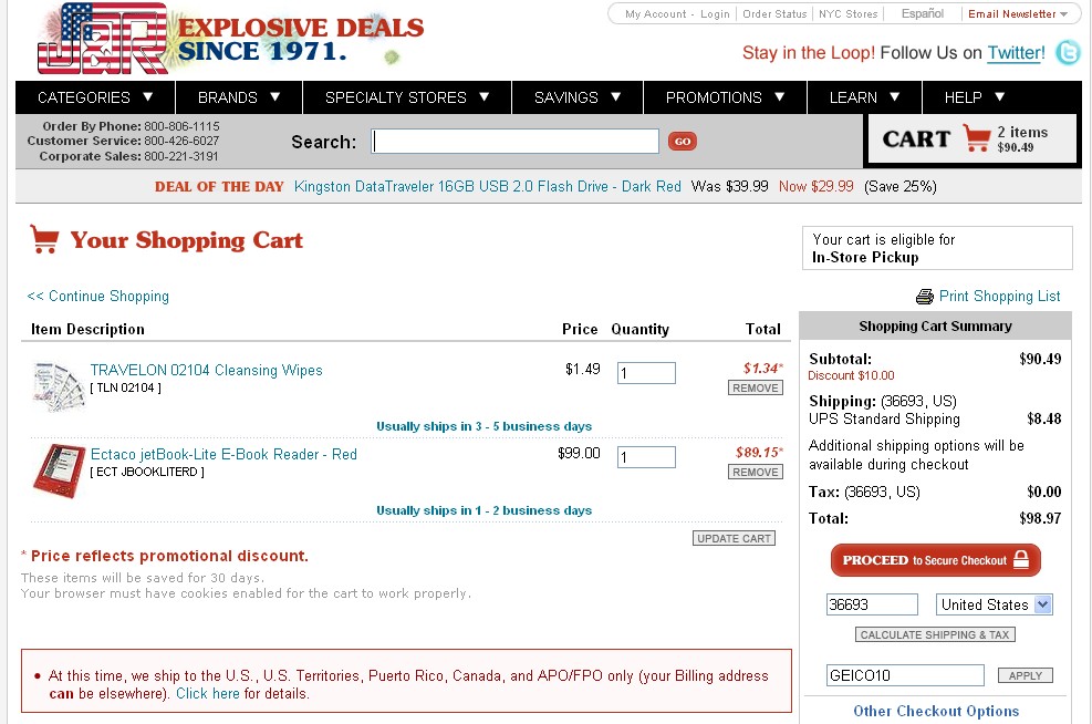 Add a cheap filler to get over $100 total and then use coupon code GEICO10 for $10 off.